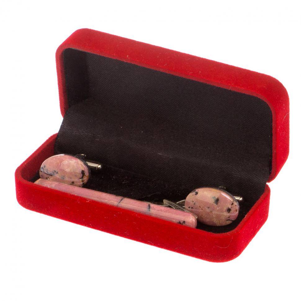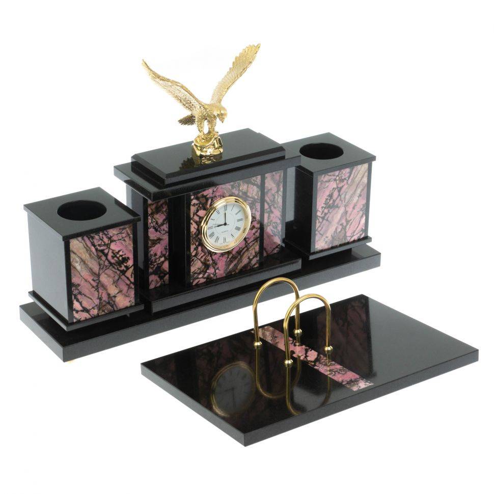 Настольный набор "Орел" из родонита | Набор запонки овальные и зажим для галстука камень родонит | Электронная зажигалка и зарядка USB |