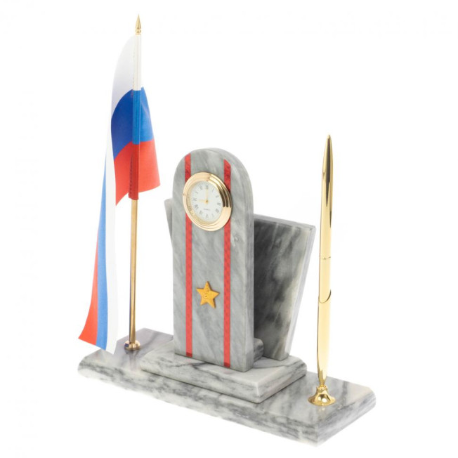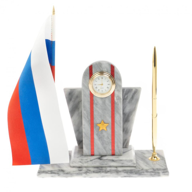 Настольный набор "Погон Майор МВД" с часами мрамор