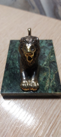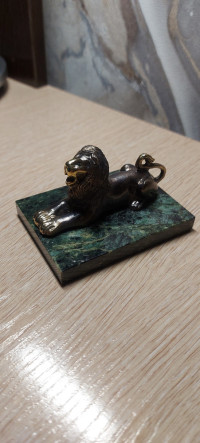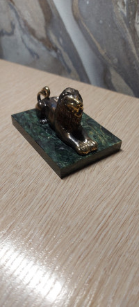 Бронзовая фигурка "Лев лежит" камень змеевик — эксклюзивное изделие ручной работы, сочетает природную эстетику, точность обработки и художественный замысел, отличается утончённым стилем и продуманной композицией.