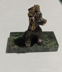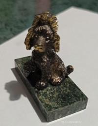 Бронзовая фигурка "Пудель" на подставке из змеевика — эксклюзивное изделие ручной работы, сочетает природную эстетику, точность обработки и художественный замысел, отличается утончённым стилем и продуманной композицией.