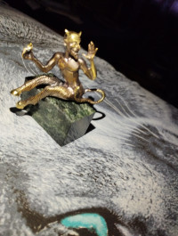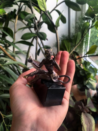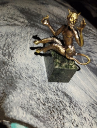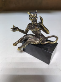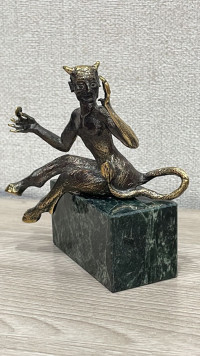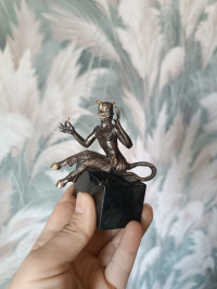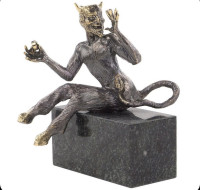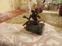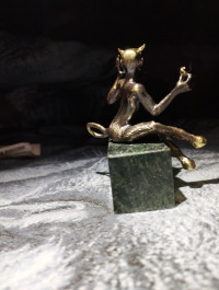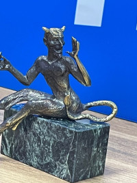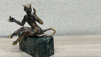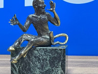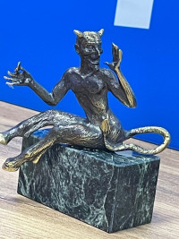 Бронзовая статуэтка "Чертик" на подставке из черного змеевика — эксклюзивное изделие ручной работы, сочетает природную эстетику, точность обработки и художественный замысел, отличается утончённым стилем и продуманной композицией.