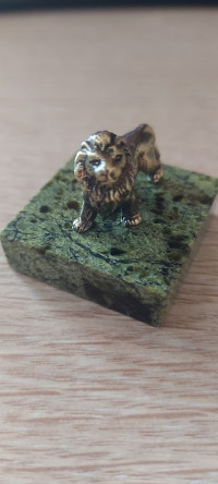 Бронзовая статуэтка "Лев малый" змеевик — эксклюзивное изделие ручной работы, сочетает природную эстетику, точность обработки и художественный замысел, отличается утончённым стилем и продуманной композицией.