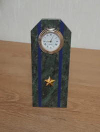 Купить Часы "Погон майор ФСБ, ФСО" камень змеевик в Podari VIP — значит выбрать функциональный интерьерный аксессуар из натурального камня, рассчитанный на длительное использование и стабильную работу.