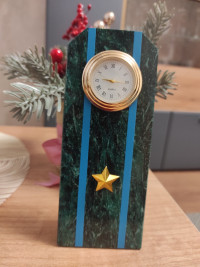 Купить Часы "Погон майор ВВС, ВКС, ВДВ" камень змеевик в Podari VIP — значит выбрать функциональный интерьерный аксессуар из натурального камня, рассчитанный на длительное использование и стабильную работу.