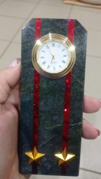 Купить Часы "Погон подполковник МП ВМФ" из змеевика в Podari VIP — значит выбрать функциональный интерьерный аксессуар из натурального камня, рассчитанный на длительное использование и стабильную работу.