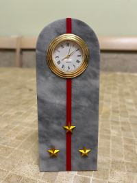 Купить Часы "Погон старший лейтенант МВД" из мрамора в Podari VIP — значит выбрать функциональный интерьерный аксессуар из натурального камня, рассчитанный на длительное использование и стабильную работу.