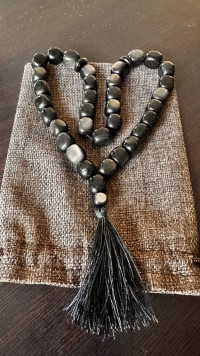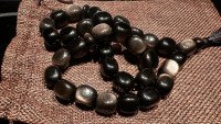 Четки из обсидиана с иризацией 33 бусины овал — эксклюзивное изделие ручной работы, сочетает природную эстетику, точность обработки и художественный замысел, отличается утончённым стилем и продуманной композицией.