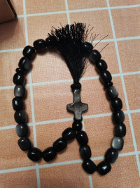 Четки с крестом из черного обсидиана с иризацией 33 бусины круглые — эксклюзивное изделие ручной работы, сочетает природную эстетику, точность обработки и художественный замысел, отличается утончённым стилем и продуманной композицией.