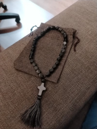 Четки с крестом из серого обсидиана 33 бусины грань — эксклюзивное изделие ручной работы, сочетает природную эстетику, точность обработки и художественный замысел, отличается утончённым стилем и продуманной композицией.
