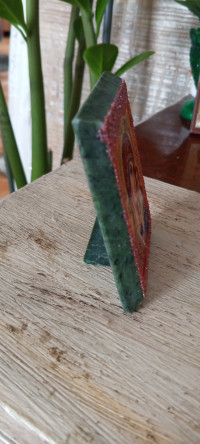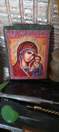 Икона настольная "Богородица" камень змеевик 9х7,2х3 см — эксклюзивное изделие ручной работы, сочетает природную эстетику, точность обработки и художественный замысел, отличается утончённым стилем и продуманной композицией.