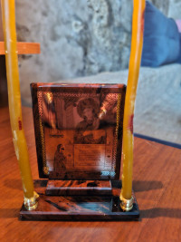 Купить Икона настольная "Нечаянная радость" из обсидиана с подсвечниками в Podari VIP— значит выбрать изделие, в котором соединены природная красота, точность исполнения и эстетика премиум-класса.
