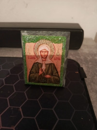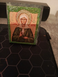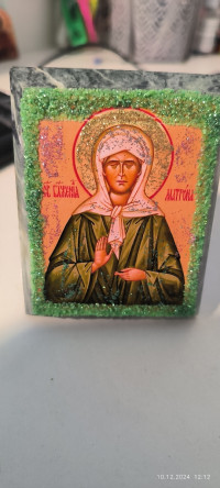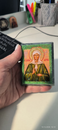 Икона настольная "Святая Матрона" камень змеевик 9х7,2х3 см — эксклюзивное изделие ручной работы, сочетает природную эстетику, точность обработки и художественный замысел, отличается утончённым стилем и продуманной композицией.