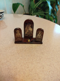 Икона триптих "Спаситель, Семистрельная, Николай" камень обсидиан станет достойным подарком и элементом домашнего иконостаса. Натуральный камень обеспечивает долговечность изделия, а качественное исполнение делает его уместным как в личном использовании, так и в статусном подарочном сегменте.