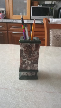 Карандашница из креноида 7х7х14 см — эксклюзивное изделие ручной работы, сочетает природную эстетику, точность обработки и художественный замысел, отличается утончённым стилем и продуманной композицией.