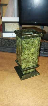 Карандашница настольная из камня змеевик — эксклюзивное изделие ручной работы, сочетает природную эстетику, точность обработки и художественный замысел, отличается утончённым стилем и продуманной композицией.
