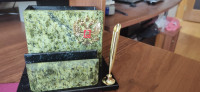 Карандашница с визитницей из змеевика станет изысканным подарком на юбилей, корпоратив, профессиональный праздник или важное событие. Каждый товар поставляется в подарочной упаковке, полностью готов к вручению.