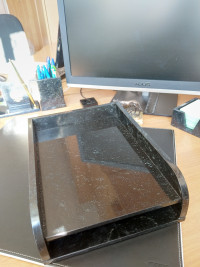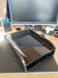 Лоток для бумаг А4 двухъярусный черный змеевик — эксклюзивное изделие ручной работы, сочетает природную эстетику, точность обработки и художественный замысел, отличается утончённым стилем и продуманной композицией.