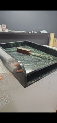 Лоток для бумаг А4, двухярусный, змеевик — эксклюзивное изделие ручной работы, сочетает природную эстетику, точность обработки и художественный замысел, отличается утончённым стилем и продуманной композицией.