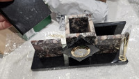 Но при всем при этом оказался небольшой дефект, с которым набор пришел от продавца: отбит небольшой кусочек камня со стороны донышка и угла подставки в правом заднем углу изделия. Сильно этот дефект не бросается в глаза со стороны задника подставки, которым изделие будет стоять к посетителям, внимательный человек довольно быстро увидит этот скол, что неприятный осадок оставляет, т.к. ожидаешь качественное и целое изделие за свои деньги, тем более когда покупаешь подарок.