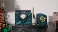 Купить Настольная визитница "Щит" из темно-зеленого змеевика в Podari VIP— значит выбрать изделие, в котором соединены природная красота, точность исполнения и эстетика премиум-класса.