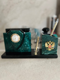 Настольная визитница "Щит" из темно-зеленого змеевика станет изысканным подарком на юбилей, корпоратив, профессиональный праздник или важное событие. Каждый товар поставляется в подарочной упаковке, полностью готов к вручению.