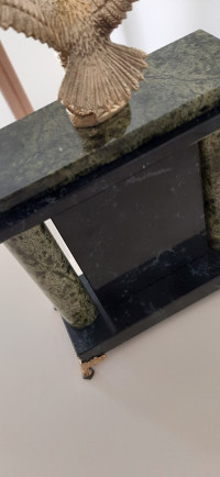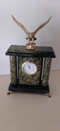 Настольные часы "Горный орёл" камень змеевик — изделие ручной работы, изготовленное с использованием натурального камня. Практичный аксессуар и стильный элемент декора обладает продуманной формой корпуса и актуальным дизайном.