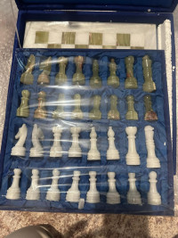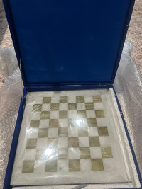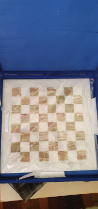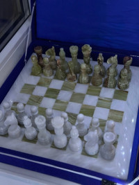 Шахматы изготовлены вручную из природного зеленого оникса и белого мрамора, имеют размеры доски 30х30 см и весят 5000 г.