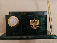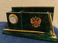 Настольный мини-набор "Гербовый" камень змеевик станет изысканным подарком на юбилей, корпоратив, профессиональный праздник или важное событие. Каждый товар поставляется в подарочной упаковке, полностью готов к вручению.