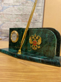 Купить Настольный мини-набор из змеевика "Герб" в Podari VIP— значит выбрать изделие, в котором соединены природная красота, точность исполнения и эстетика премиум-класса.