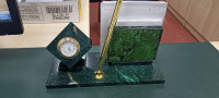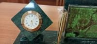 Настольный набор из змеевика с иллюстрацией под малахит станет изысканным подарком на юбилей, корпоратив, профессиональный праздник или важное событие. Каждый товар поставляется в подарочной упаковке, полностью готов к вручению.