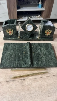 Настольный набор "Куб" из шабровского змеевика станет изысканным подарком на юбилей, корпоратив, профессиональный праздник или важное событие. Каждый товар поставляется в подарочной упаковке, полностью готов к вручению.