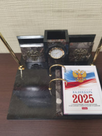 Настольный набор "Офисный" с часами из камня конгломерат станет изысканным подарком на юбилей, корпоратив, профессиональный праздник или важное событие. Каждый товар поставляется в подарочной упаковке, полностью готов к вручению.