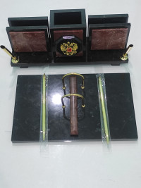 Купить Настольный набор "Офисный" с гербом РФ из камня лемезит в Podari VIP— значит выбрать изделие, в котором соединены природная красота, точность исполнения и эстетика премиум-класса.