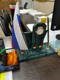 Настольный набор "Погон подполковник ВС" змеевик — эксклюзивное изделие ручной работы, сочетает природную эстетику, точность обработки и художественный замысел, отличается утончённым стилем и продуманной композицией.