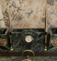 Купить Настольный набор "Щит" из шабровского змеевика в Podari VIP— значит выбрать изделие, в котором соединены природная красота, точность исполнения и эстетика премиум-класса.