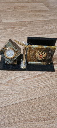 Письменный набор "Герб РФ" камень офиокальцит станет изысканным подарком на юбилей, корпоратив, профессиональный праздник или важное событие. Каждый товар поставляется в подарочной упаковке, полностью готов к вручению.