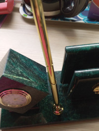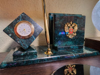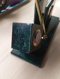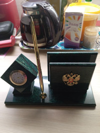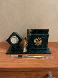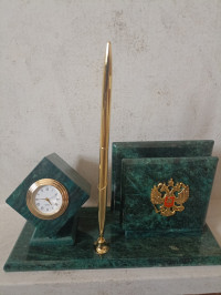 Замечательный письменный набор. Камень змеевик качественно обработан, красиво смотрится. Брала в подарок. Всем понравился. Спасибо производителям.