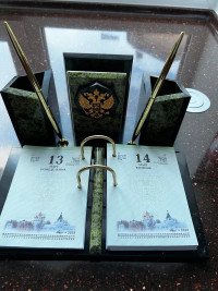 Письменный набор "Грани" с гербом России змеевик станет изысканным подарком на юбилей, корпоратив, профессиональный праздник или важное событие. Каждый товар поставляется в подарочной упаковке, полностью готов к вручению.