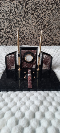 Купить Письменный набор "Канцелярский" с часами из креноида в Podari VIP— значит выбрать изделие, в котором соединены природная красота, точность исполнения и эстетика премиум-класса.