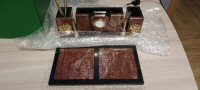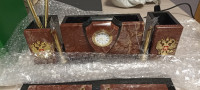 Письменный набор "Щит" из камня лемезит — эксклюзивное изделие ручной работы, сочетает природную эстетику, точность обработки и художественный замысел, отличается утончённым стилем и продуманной композицией.