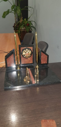 Письменный набор "Супер" с гербом РФ камень лемезит — эксклюзивное изделие ручной работы, сочетает природную эстетику, точность обработки и художественный замысел, отличается утончённым стилем и продуманной композицией.