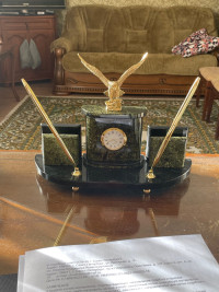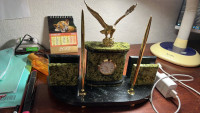 Письменный прибор "Гордый орел" из змеевика и бронзы — эксклюзивное изделие ручной работы, сочетает природную эстетику, точность обработки и художественный замысел, отличается утончённым стилем и продуманной композицией.