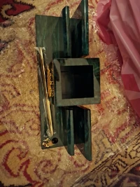 Письменный прибор "Менеджер" из змеевика — эксклюзивное изделие ручной работы, сочетает природную эстетику, точность обработки и художественный замысел, отличается утончённым стилем и продуманной композицией.