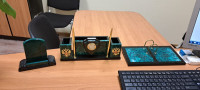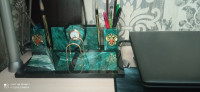 Этот канцелярский набор не только украшает стол, но и является практичным инструментом для работы. Я очень доволен своей покупкой и рекомендую письменный прибор «Щит» из камня змеевик всем, кто хочет порадовать своего руководителя или добавить изысканности в свой рабочий процесс.