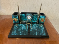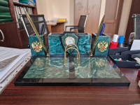 Камень змеевик выглядит очень изысканно и благородно. Этот письменный прибор несомненно выделит рабочее место и подчеркнёт серьёзность и статусность обстановки. Я уверен, что такой подарок вызовет улыбку одобрения и радость у любого руководителя.