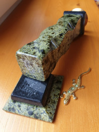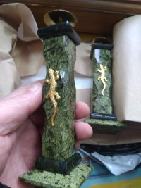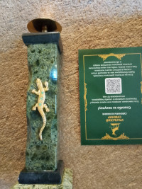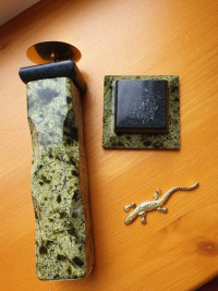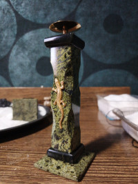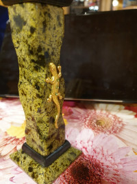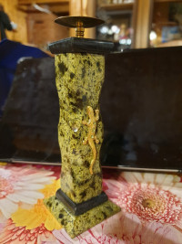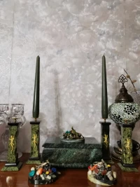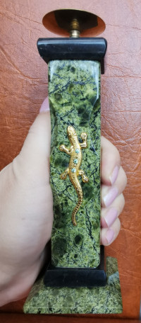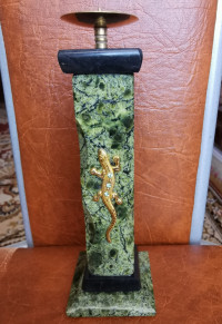 Подсвечник из змеевика с ящерицей 5х5х16 см — эксклюзивное изделие ручной работы, сочетает природную эстетику, точность обработки и художественный замысел, отличается утончённым стилем и продуманной композицией.