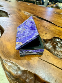 Шкатулка из чароита 10,5х6,5х4 см — изысканное изделие ручной работы интернет-магазина Podari VIP. Каждая шкатулка создаётся мастерами из натуральных материалов с применением традиционных технологий камнерезного и ювелирного искусства.