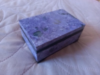 Шкатулка из камня чароит 9,5х6,5х4,5 см сочетает в себе функциональность и художественную ценность. Каменная текстура придаёт каждой шкатулке уникальный рисунок, а бронзовые элементы дополняют её благородным блеском. Лаконичные формы делают модель универсальной — она гармонично впишется в классический или современный интерьер.
