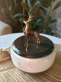 Шкатулка круглая "Олень" мрамор бронза 10х10х11,5 см — изысканное изделие ручной работы интернет-магазина Podari VIP. Каждая шкатулка создаётся мастерами из натуральных материалов с применением традиционных технологий камнерезного и ювелирного искусства.