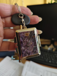 Складное зеркало брелок чароит прямоугольное — эксклюзивное изделие ручной работы, сочетает природную эстетику, точность обработки и художественный замысел, отличается утончённым стилем и продуманной композицией.